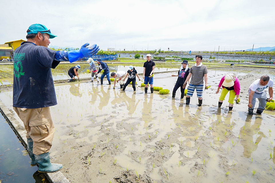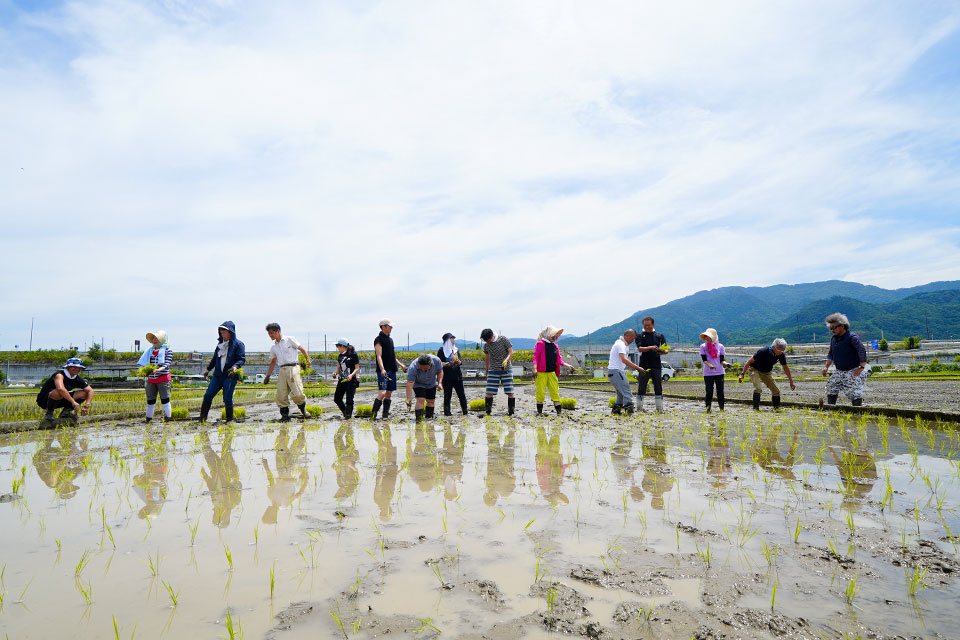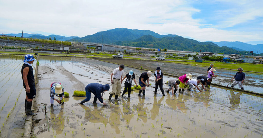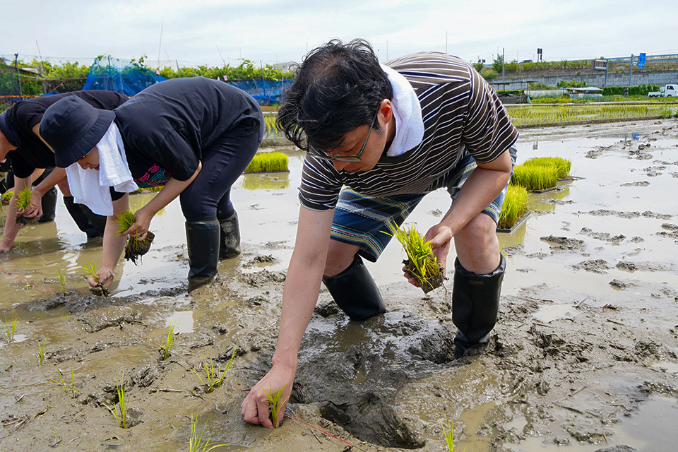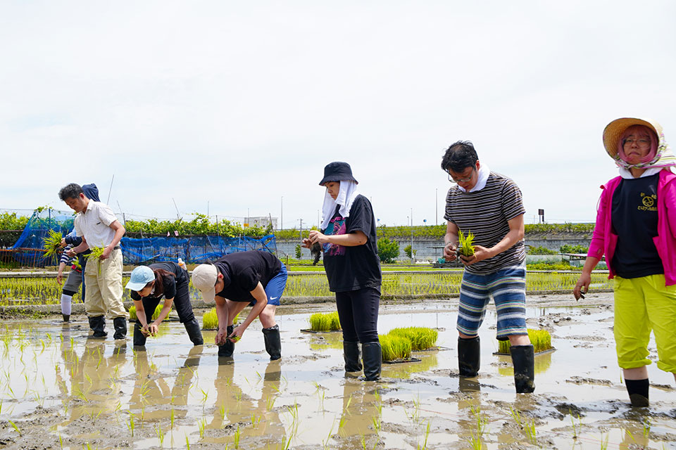 日本酒の原料はご存じの通り、米と水です。その米作りから、酒屋角打ちフェスの運営メンバーは勉強を兼ねて田植えを手伝っています。