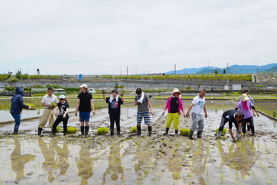 時間が経つのはあっという間です。田んぼの大半を植え終えたところで、時間となりました。普段やらない田植え作業に、皆さん子どものような笑顔でした。