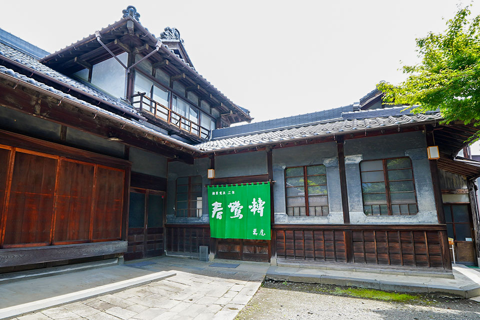 1790年(寛政2年)創業、230年以上の歴史を持つ萬屋醸造店。交流のあった歌人・与謝野鉄幹・晶子が詠んだ短歌「法隆寺などゆく如し甲斐の御酒春鶯囀(しゅんのうてん)のかもさるゝ蔵」から、お酒の銘柄を「春鶯囀」としたそうです。