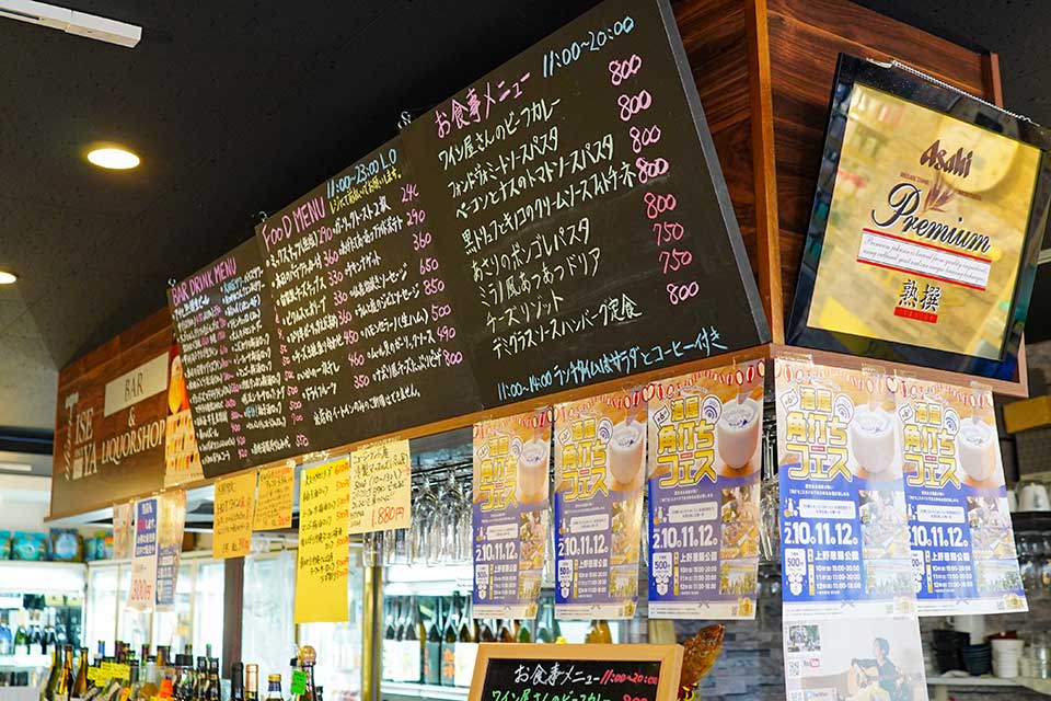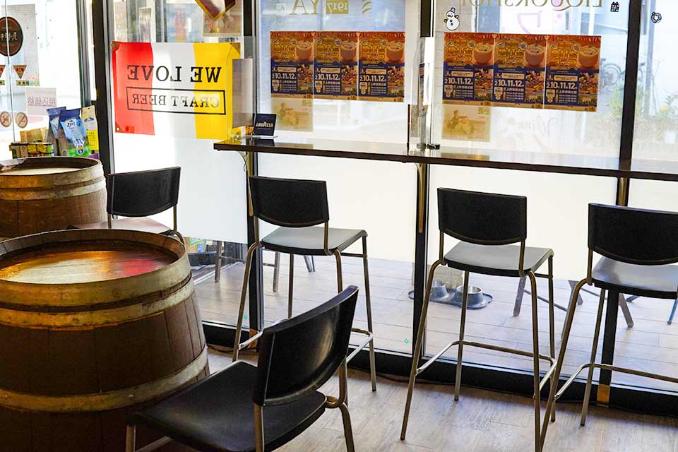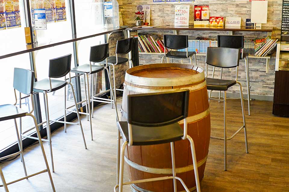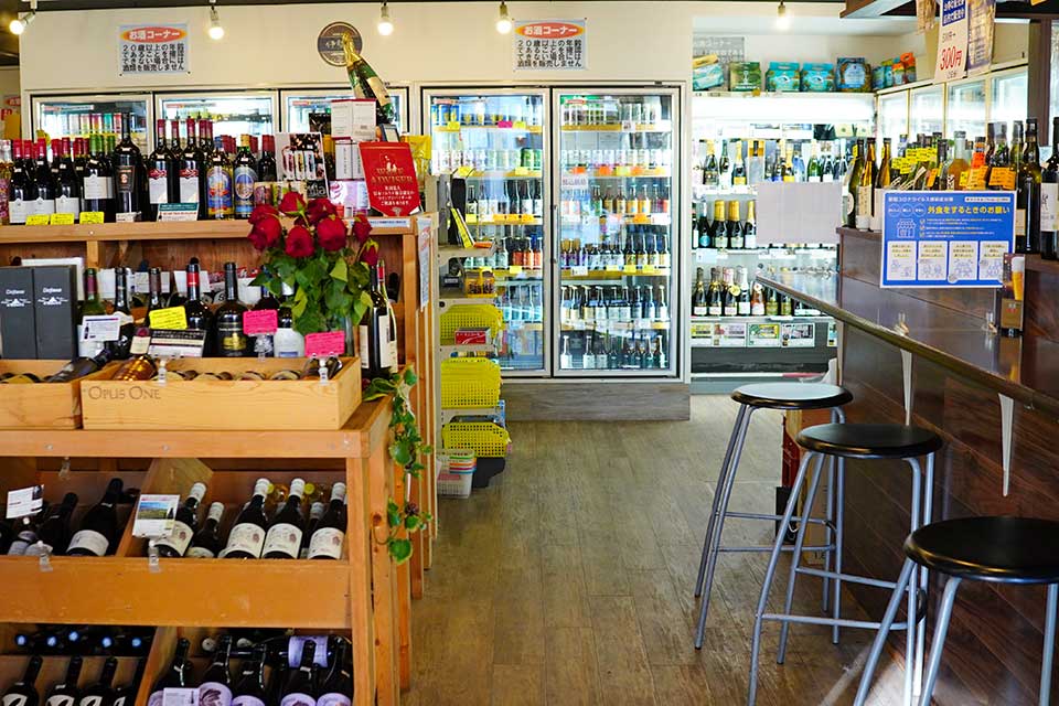 お店の営業中はいつでも角打ちは利用可能(※ラストオーダーは23:00)で、早い時間はカフェ感覚でお昼飲みを楽しむお客さんの姿もみられます。夜も遅くまで営業しているため、近隣のお酒好きの方が集まりバー利用で賑わっているそうです。