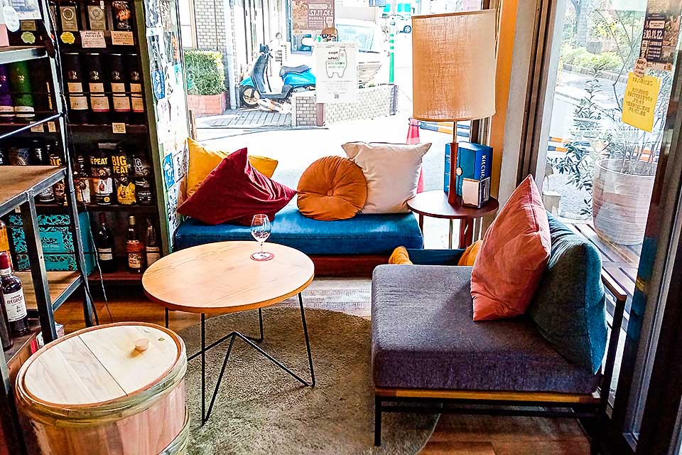小売スペースの一画にはソファが用意されており、オシャレなカフェのよう。立ち飲みの角打ちはあまり飲みに行かない…という人にもオススメできる雰囲気です。